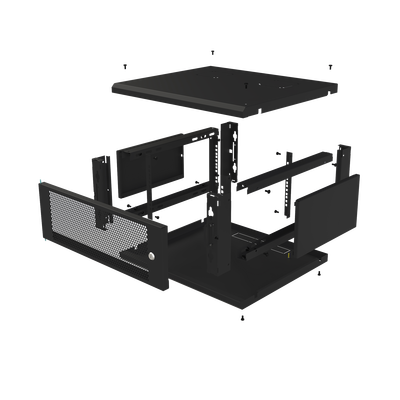 - Cuerpo metálico (tapas, laterales, postes racks)