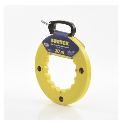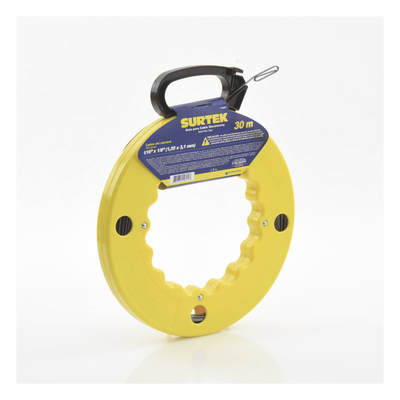 Guía jala cable SYS-112601 de 30 metros fabricada en acero SAE 1045. Su ojo agrandado acomoda hasta 5 alambres calibre 12 AWG, cuenta con una caja transparente para visualizar el contenido y ofrece un diseño funcional y compacto para optimizar el espacio.