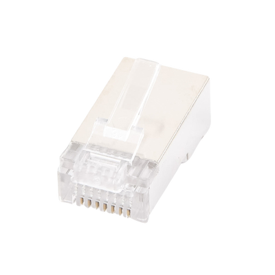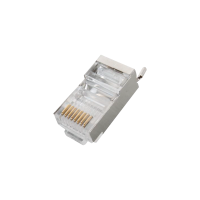 Conector RJ45 TC5SW compatible con cable par trenzado categoría 5e blindado sin pin a tierra, diseñado para cables Cat5e. Conector RJ-45, compatible con cable UTP, con blindaje, ideal para uso en interiores. Ofrece una conexión más segura gracias al blindaje.