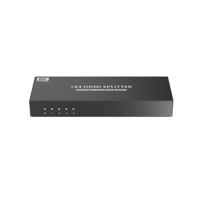 Divisor HDMI 8K que divide una señal de entrada HDMI en cuatro salidas HDMI. Cumple con el estándar HDMI2.1 y es capaz de soportar resoluciones de vídeo de hasta 8K@60Hz/4K@120Hz/1080p@240Hz. Además, cuenta con HDR10+, Dolby Vision y VRR para una experiencia visual excepcionalmente nítida y suave. Es ideal para su uso en tiendas de TV, cines, publicidad al aire libre y entretenimiento en el hogar.