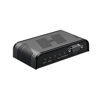 - Convierte la señal S-VIDEO, BNC (CVBS), VGA en una señal VGA.