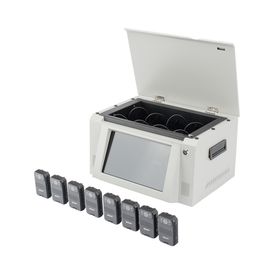 - Estación para BodyCam que realiza descarga de información y carga de batería simultáneamente.