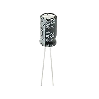 Capacitor electrolítico radial 0100M0025V 100 µf 25 vcc 105 °c diseño radial eficiente