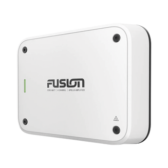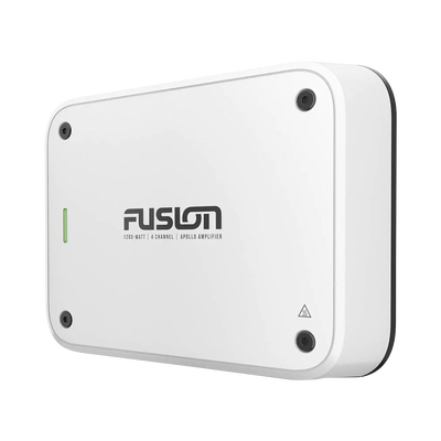 Amplificador náutico de audio 10-02284-40 de GARMIN con 4 canales de 150 W RMS por canal. Resistencia al agua IPX2, dimensiones de 235 x 180 x 45 mm, peso de 2,2 kg y salida de potencia total de 1200 W a 4 ohmios. Ofrece conexiones para 4 altavoces o 2 altavoces y un subwoofer, asegurando un potente sonido claro y sin distorsión.