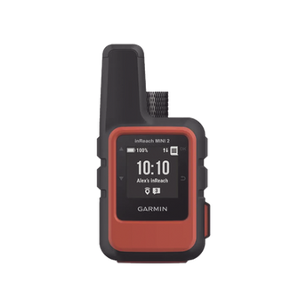 GPS portátil inReach® Mini 2 GARMIN, pantalla 23 x 23 mm IPX7, batería hasta 14 días. Peso 100 g, dimensiones 5.17 x 9.90 x 2.61 cm. Pantalla monocroma transflectiva y conectividad Bluetooth® y ANT+® para un mejor seguimiento de actividades.