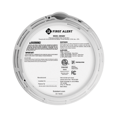 Alarma de Humo 1046774 de FIRST ALERT con interconexión inalámbrica y advertencia de voz. Con un rango de temperatura de 4.4°C a 37.8°C, y alarma de 85 dB a 10 pies, esta alarma fotoeléctrica es ideal para detectar humo. Con dimensiones de 5.02%22 de diámetro y 2.11%22 de altura, es efectiva en ambientes de 10%25 a 95%25 de humedad relativa. Incluye botón de prueba y un indicador LED para confirmar el estado de la alarma.