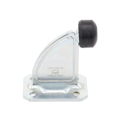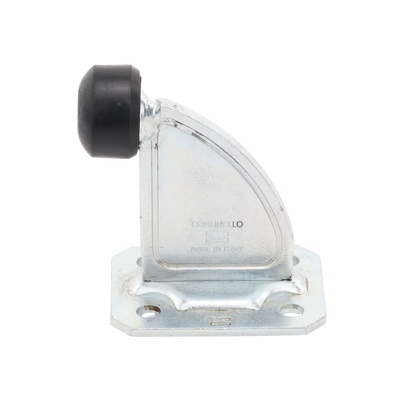 Tope de Paro 1070-1810-001 código Comunello 202 en acero galvanizado y tapón de nylon. Stop con base de fijación, peso de 0.72 kg, soporta hasta 200 kg a m/s. Ideal para puertas corredizas, con diseño compacto y funcional, aumenta la seguridad evitando deslizamientos indeseados.