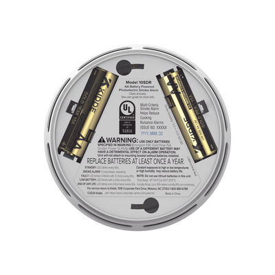 Detector de humo compacto 10SDR de KIDDE con sensor fotoeléctrico, alarma de 85 dB, tamaño 10,2 cm x 5,1 cm y alimentado por 2 pilas AA reemplazables. Ideal para espacios pequeños, fácil instalación y garantiza mayor seguridad para su familia.