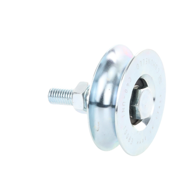 Rueda de 8 cm 1150-4525-001 de carga 200 kg, ideal para puertas corredizas. Con diámetro de 8 cm, peso de 0.66 kg y cojinete. Fijación inferior y excelente capacidad de carga.