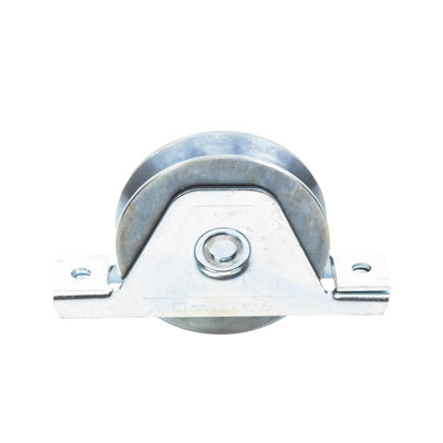 Rueda para puertas corredizas 1151-4540-001 Diámetro 10 cm Carga 380 kg Acero galvanizado Diseño optimizado. Con un diámetro de 10 cm y capacidad de carga de hasta 380 kg, esta rueda de acero galvanizado es ideal para puertas corredizas, asegurando un deslizamiento suave y confiable. Diseñada para fijarse en la parte inferior de la puerta, peso de 1.53 kg, adecuada para canales tipo \%27V\%27.