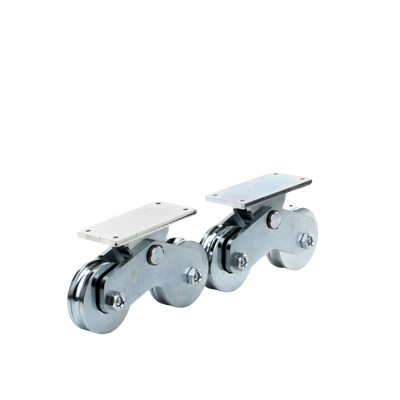 Rueda doble 1151-5641-001 Diámetro 12 cm Carga 1200 kg Acero galvanizado Diseño para puertas corredizas tipo u Fijación en la parte inferior