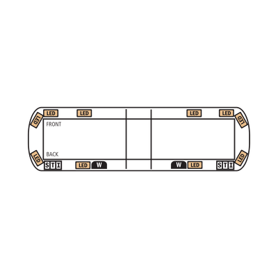 Configuración: 12 módulos con 3 LED c/u en color Ámbar, 4 módulos esquineros con 3 LED c/u en color Ámbar, 2 módulos frontales con 4 LED c/u en color blanco como luz de penetración y 2 módulos laterales con 4 LED c/u en color blanco como luz callejonera