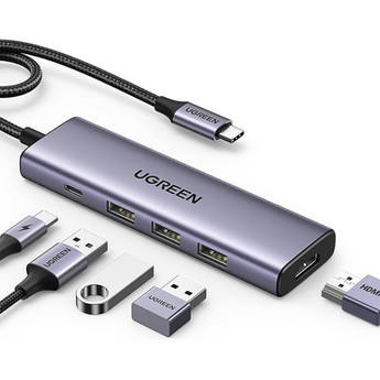 Descubre el Hub USB-C 15596 de UGREEN, ideal para quienes buscan conectividad y velocidad. Con HDMI 2.0 4K@30Hz, 3 puertos USB-A 3.0 y carga rápida de 100W, permite compartir contenido de alta definición y carga a la vez. Su diseño de aluminio garantiza una excelente disipación de calor, manteniendo todo seguro y eficiente.