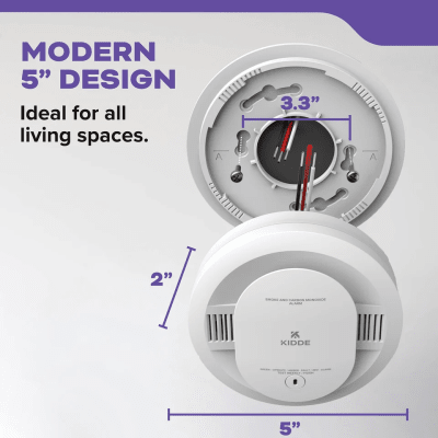 Detecte humo y monóxido de carbono con el Detector de Humo Compacto Fotoeléctrico Autónomo de KIDDE, modelo 21031529. Alimentado a 120VCA y con 2 pilas AA reemplazables cada 6 meses. Diseño moderno de 5%22, montado fácilmente con soporte de giro y clic. Cumple con el estándar UL de seguridad y confiabilidad.