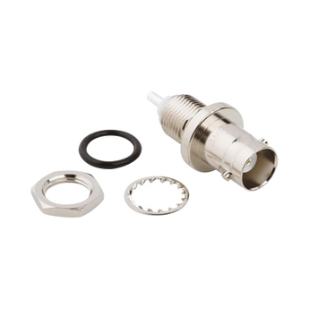 Conector BNC Hembra para Chasis en Doble D Plano, Níquel, Plata, Teflón.