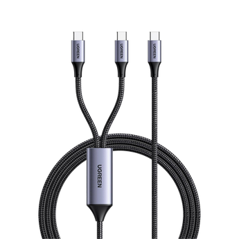 Cable USB-C a Y (USB-C %26 USB-C) | 1.5 Metros | Carga Rápida de hasta 100W, con soporte para PD3.0 y QC4.0/3.0/2.0. Fabricado en nylon trenzado y caja de aluminio, garantiza durabilidad y resistencia. Ofrece amplia compatibilidad con dispositivos modernos.