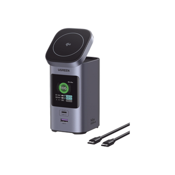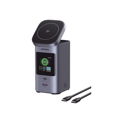 Presentamos el Banco de energía 35527B 25000mAh 3 salidas 145W Max carga rápida de UGREEN. Con tecnología PD 3.0 y QC3.0, este power bank cuenta con 3 salidas (USB-A y 2 USB-C) para cargar varios dispositivos a la vez. Su robusta carcasa ignífuga y pantalla inteligente te ofrecen un uso seguro y conveniente. Ideal para cargar laptops y smartphones on-the-go.