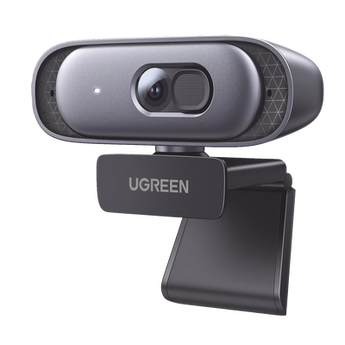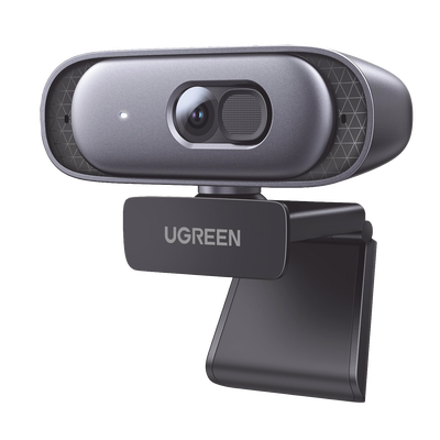 Cámara Web 2K 35626 de UGREEN con micrófono integrado y cancelación de ruido. Ideal para videoconferencias y streaming, ofrece vista amplia de 91°, corrección de luz automática, y rotación flexible de 360°. Incluye una cubierta de privacidad y cable USB de 2M para un fácil uso.