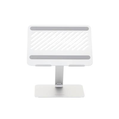 Soporte de Aluminio para Laptop 40291 ajustable 180° con capacidad de carga de 5kg. Compatible con laptops de 10 a 17.3\%27\%27. Cuenta con diseño compacto y ligero, ideal para uso en exteriores y fácil de transportar.