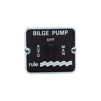 Switch para bombas de achique 45 de RULE, modelo de 3 posiciones para voltajes de 12 y 24 Vcd. Con corriente máxima de 20 amperios, dimensiones de 57 mm x 50 mm y un peso de 0,06 kg. Permite control manual con su interruptor de 3 vías y previene fallos en la bomba, ideal para múltiples aplicaciones.