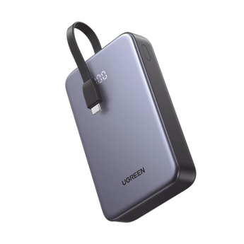 El Power Bank Portátil UGREEN 45762 de 20000mAh (74Wh) es un cargador excepcional diseñado para quienes necesitan energía en cualquier momento. Con dimensiones compactas, pesa solo 20 kg y su material robusto asegura durabilidad. Equipado con un cable USB-C incorporado y dos salidas de 22,5W, proporciona carga rápida y eficiente. Su pantalla inteligente te permite monitorear la carga. Perfecto para viajes o uso diario.