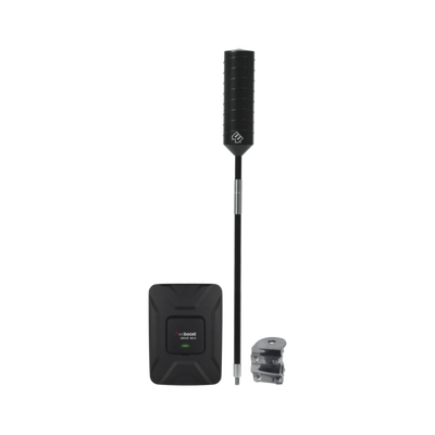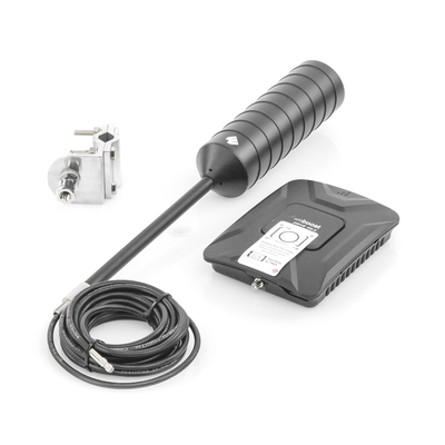 Kit amplificador de señal celular 4G-X OTR de WILSONPRO, diseñado especialmente para tractocamiones y vehículos pesados. Ofrece bandas de frecuencias de 700 MHz y 850 MHz y hasta 50 dB de ganancia. Este kit incluye todos los componentes necesarios para una fácil instalación y ayuda a aumentar la señal de todos los proveedores de telefonía móvil.