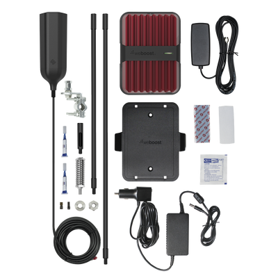 Kit amplificador de señal celular 4G LTE Drive Reach OTR de WILSONPRO / WEBOOST. Mejora la señal en tractocamiones y vehículos pesados. Soporta múltiples dispositivos con una ganancia máxima de 50 dB. Compatible con todos los operadores y fácil instalación. Incluye todo lo necesario para su instalación.