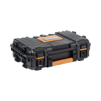 Caja de herramientas profesional RIDGID 54338 56.4 x 35 x 16.5 cm 14.5L, fabricada en polipropileno de ultra alto impacto. Hermética y a prueba de agua hasta 30 pies, con 6 contenedores extraíbles, uso rudo y diseño resistente. Perfecta para organizar y proteger tus herramientas.