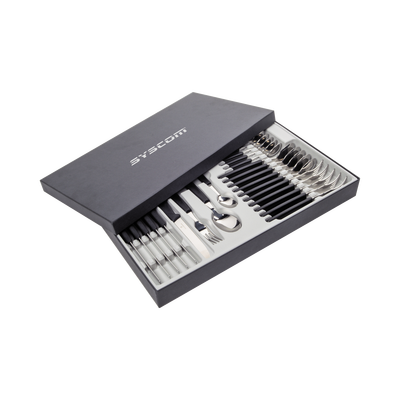 El Set de Mesa Swiss Classic de 24 piezas de Victorinox es ideal para 6 personas. Fabricado en polipropileno, cuenta con cuchillos de filo dentado de 110 mm, mangos ergonómicos y un peso total de 1.280 kg. Perfecto para recibir invitados y comidas diarias, su diseño combina forma y función.