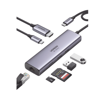 El Hub USB-C (Docking Station) 7 en 1 UGREEN es la solución perfecta para expandir la conectividad de tus dispositivos. Con dimensiones de 20cm x 15cm x 5cm y un peso de solo 500g, este compacto hub ofrece 2 puertos USB-A 3.0, un puerto USB-C PD para carga de 100W, HDMI 4K a 60Hz y RJ45 Gigabit Ethernet. Su diseño ergonómico y fácil de limpiar lo hacen ideal para cualquier configuración de trabajo o entretenimiento, permitiendo organizar tus dispositivos de manera eficiente.