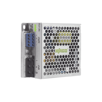 Fuente de alimentación 787-1712 de WAGO, salida 24V DC y corriente de 2,5A. Ideal para montaje en carril DIN-35. Se distingue por su tensión de salida separada galvánicamente (SELV), PELV según EN 60204 y refrigeración por convección natural. Permite conexión en paralelo o en línea, asegurando una fácil instalación en diversas posiciones.