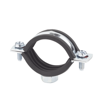 Abrazadera isofónica reforzada AB-RIP-035 Acabado cincado recubrimiento 3 micras Material goma EPDM aislamiento acústico y vibracional Diseño que reduce el sonido y las vibraciones Temperatura de trabajo -30ºC a +120ºC