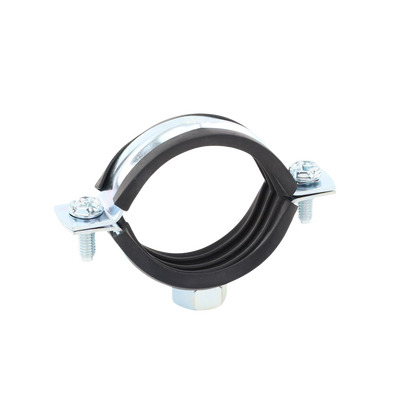 Abrazadera isofónica AB-RIP-040 cincado electrolítico 1.75 mm de espesor temperatura de trabajo -30ºC a +120ºC isofónica goma de EPDM para aislamiento. Ideal para tubos de acero y plástico, cuenta con un acabado de cincado electrolítico, tuerca soldada de 3/8\%27\%27, carga máxima de 150 kg y un diámetro interno de 1 1/4%22. Su diseño reduce el sonido y las vibraciones, mejorando el aislamiento acústico en instalaciones.