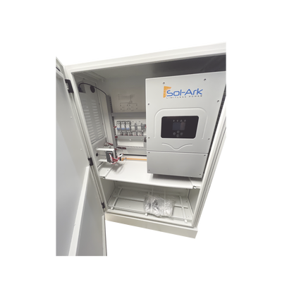 Estacion de inversor hibrido AIO8K20KWHCABINETUS Split fase 120/240vac Carga configurada en pantalla LCD Monitoreo wifi Autoconsumo e inyección a red