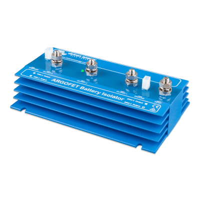 Los puentes de diodo ARGOFET de Victron Energy permiten la carga simultánea de varias baterías desde un solo alternador o cargador, sin conectarlas entre sí. Esto garantiza que la batería de servicio y la batería de arranque permanezcan aisladas, evitando descargas indeseadas y mejorando la eficiencia del sistema eléctrico.
