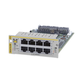 Módulo de expansión AT-SBX81XLEM/GT8 8x1G RJ45, compatible con la tarjeta SBx81XLEM. Cuenta con 8 puertos RJ45 a 1GbE, instalación fácil y mejora la capacidad de red con puertos adicionales.