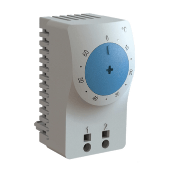 Los termostatos fáciles de instalar, regulan y controlan la temperatura del aire en gabinetes que contienen equipos emisores de calor. Los termostatos prolongan la vida útil del calentador o el ventilador al controlar el tiempo de operación y aumentan la eficiencia de trabajo de los componentes eléctricos al exponerlos a menos contaminantes ambientales.