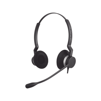 Auricular Jabra BIZ-2300-DUO-QD 68g tecnología PeakStop 360º brazo articulado diseñado para contact centers comodidad todo el día micrófono con cancelación de ruido