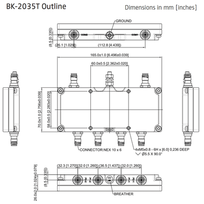 Diplexor dual BK2035T 1695-2200 mhz 2496-2690 mhz 50w ip67 baja pérdida