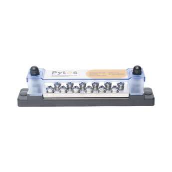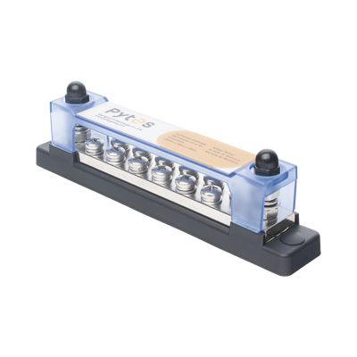 Bloque de terminales BUSBAR300A 300A 52VDC M8 acero inoxidable diseño robusto. Este bloque soporta hasta 300 A y 52 VDC. Fabricado con acero inoxidable y cobre estañado, cuenta con una cubierta de policarbonato transparente. Su diseño compacto y duradero facilita la instalación en espacios reducidos y asegura conexiones eléctricas seguras y confiables.