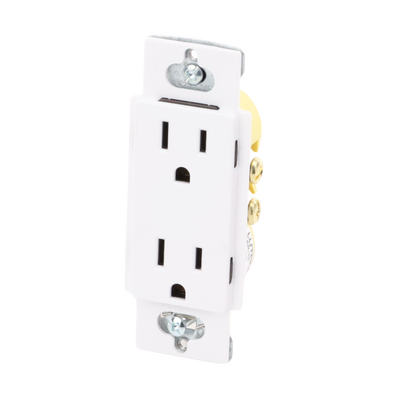 Tomacorriente CAR15WH 120V 15A Color blanco, receptáculo convencional diseñado para durar. Ofrece receptáculos resistentes a la manipulación y un obturador que aumenta la seguridad. Ideal para hogares y oficinas.