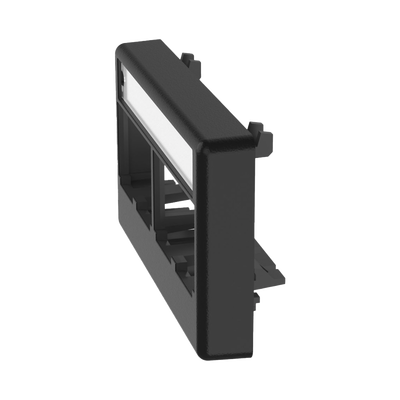 Panel de mobiliario CFFPL4BL 4 puertos mini-com ABS negro diseño compacto elegante. Acepta cuatro módulos Mini-Com, instalable en apertura de muebles de oficina estándar. Su material de alta calidad (ABS) y diseño plano mejoran la organización y estética del espacio de trabajo.
