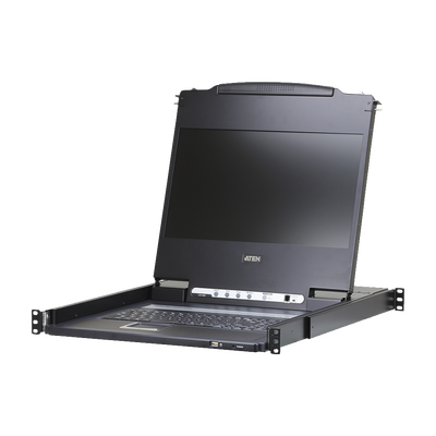 - Consola KVM integrada con un monitor LCD LED retroiluminado de 17,3' y resolución Full HD en una carcasa de riel único, diseñada para una fácil instalación en un rack de sistema de 1U.