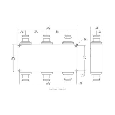 Combinador hibrido CM-80KE 617-2700 mhz 150W IP68 conecta 3 entradas a 3 salidas aislamiento de hasta 25 dB. Frecuencias: 617-2700 MHz. Potencia de 150W. Calificado para entornos hostiles. PIM: -161 dBc.