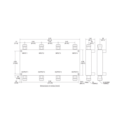 El híbrido 4x4 es una matriz de acopladores híbridos dispuestos de modo que las señales aplicadas a cualquiera de las cuatro entradas se dividan por igual entre las cuatro salidas. Esto permite la combinación de múltiples señales en la misma banda inalámbrica a un cable de alimentación común, como podría ser necesario en un sistema de antena distribuida en un edificio de host neutral. Los puertos de salida no utilizados deben terminarse externamente en 50 W, con un rendimiento PIM adecuado. Tenga en cuenta que la relación de fase de las salidas en este modelo no es consistente.