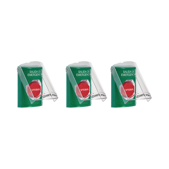 Botón de emergencia CP-SS13-ES activación ajustable 10a@125/250vca dimensiones 82 x 124 x 41 mm incluye cubierta protectora iluminación roja y verde