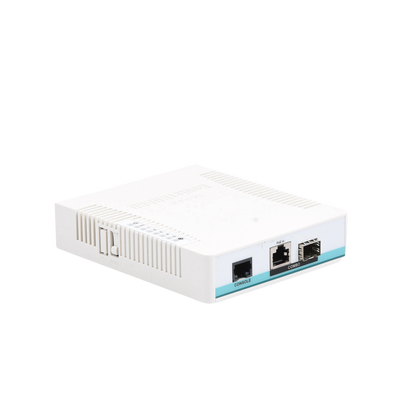 El Cloud Router Switch 106-1C-5S es un switch inteligente de tamaño de escritorio, equipado con un puerto combinado Gigabit Ethernet / SFP y cinco jaulas SFP de 1,25 Gbps. El paquete incluye una fuente de alimentación. Alimentado por una CPU de 400MHz y 128MB de RAM, ejecuta RouterOS con una licencia L5 y admite energía de 11 a 30 V.
