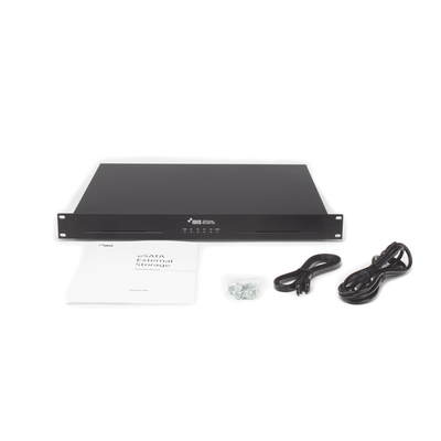 Dispositivo de almacenamiento DA-ES1104 4 bahías RAID 0 1 5 24TB 3.0 Gbps eSATA diseño compacto. Ofrece almacenamiento eSATA de 4 bahías, montaje en rack de 19%22 y velocidad de transferencia de 3.0 Gbps. Es compatible con múltiples configuraciones RAID y permite un mejor almacenamiento y acceso a datos.
