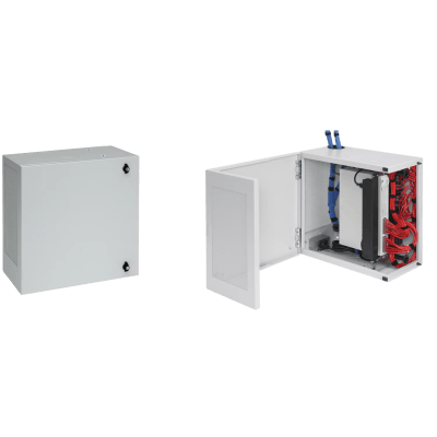 | Gabinete de montaje en pared L-Box, de perfil bajo y orientado verticalmente. | Sí |