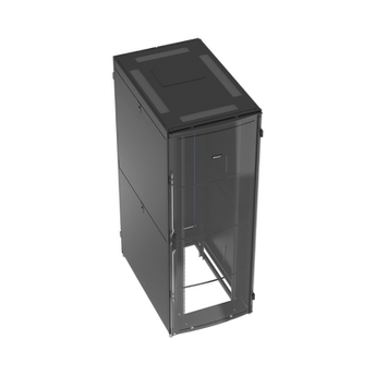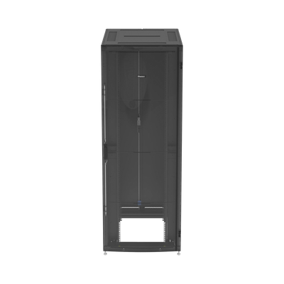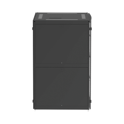 Gabinete net-verse DNE8522B 45U 800mm ancho 1200mm profundidad acero negro puertas con bloqueo rieles ajustables. Este gabinete cuenta con dimensiones de 800 mm x 2178 mm x 1200 mm, fabricado en acero con recubrimiento de polvo negro, con una capacidad de carga estática de 3300 lb y rodante de 1100 lb. Incluye puertas con bloqueo para mayor seguridad y rieles ajustables para una instalación eficiente, ofreciendo máxima flexibilidad en implementaciones en Centros de Datos.